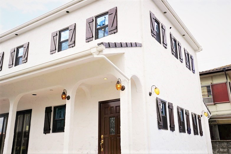 外装は厚塗りの漆喰で仕上げました。
